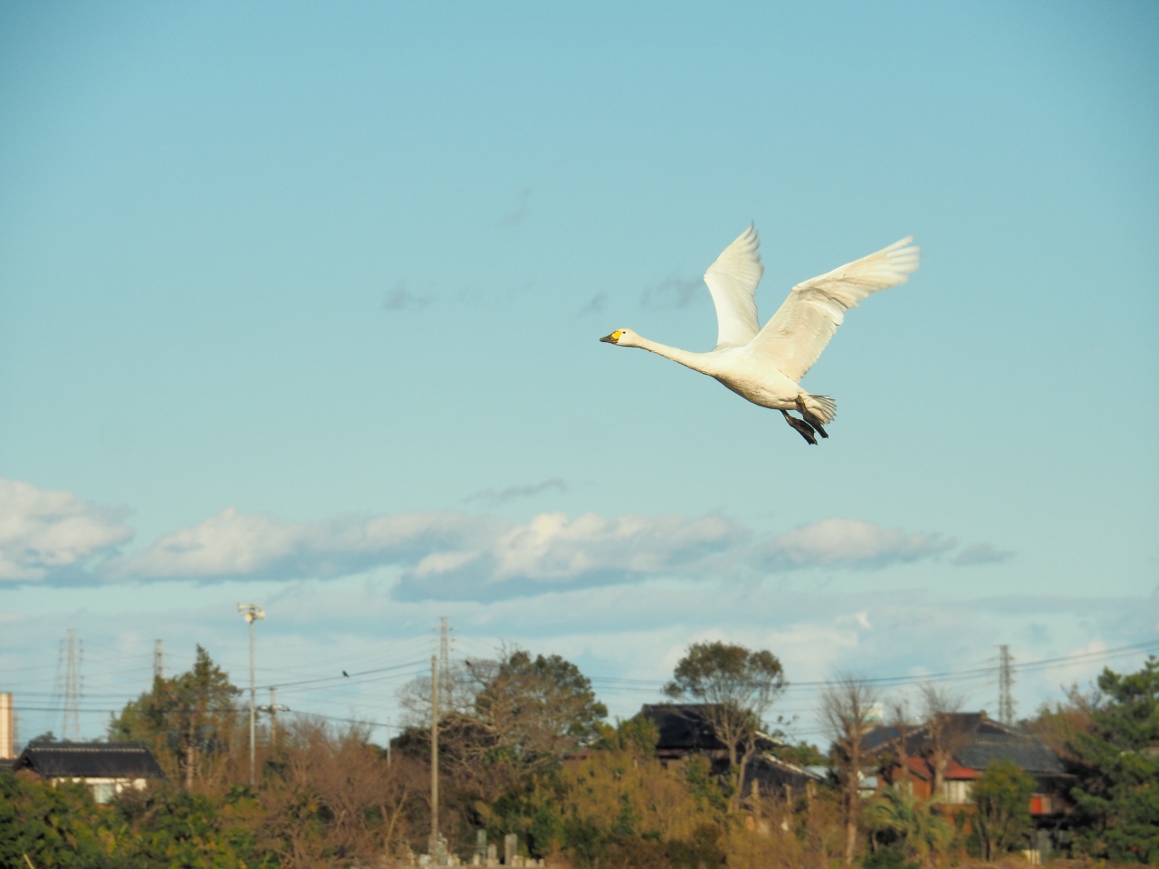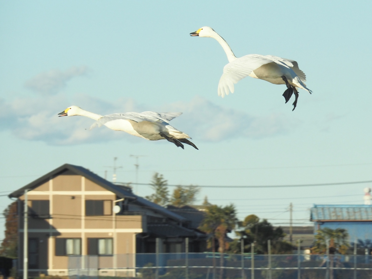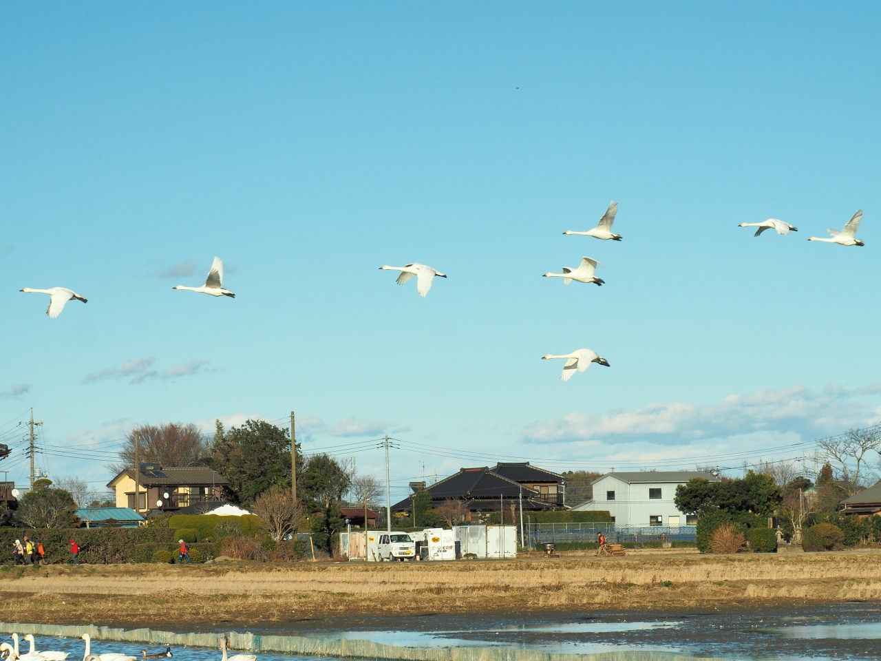 千葉県印西市にある水田 白鳥の郷は関東で白鳥を観察できる貴重なスポットです。新潟県瓢湖に次ぐ規模だそうです。16時くらいに餌やりを行いますが、その前に白鳥が次々に戻ってきます。連れなって空を舞う姿がとても美しいです。