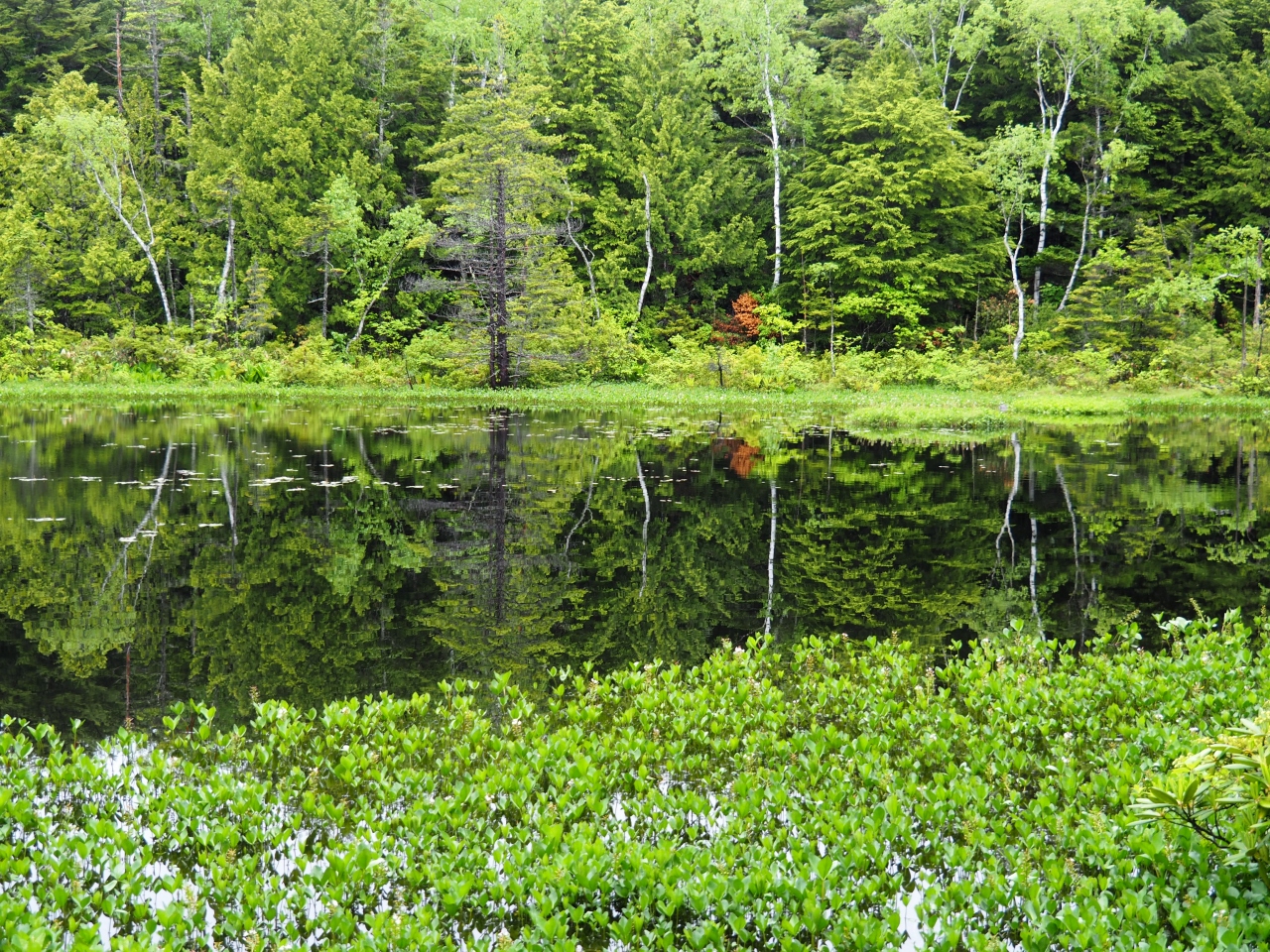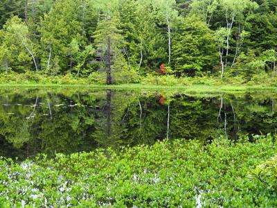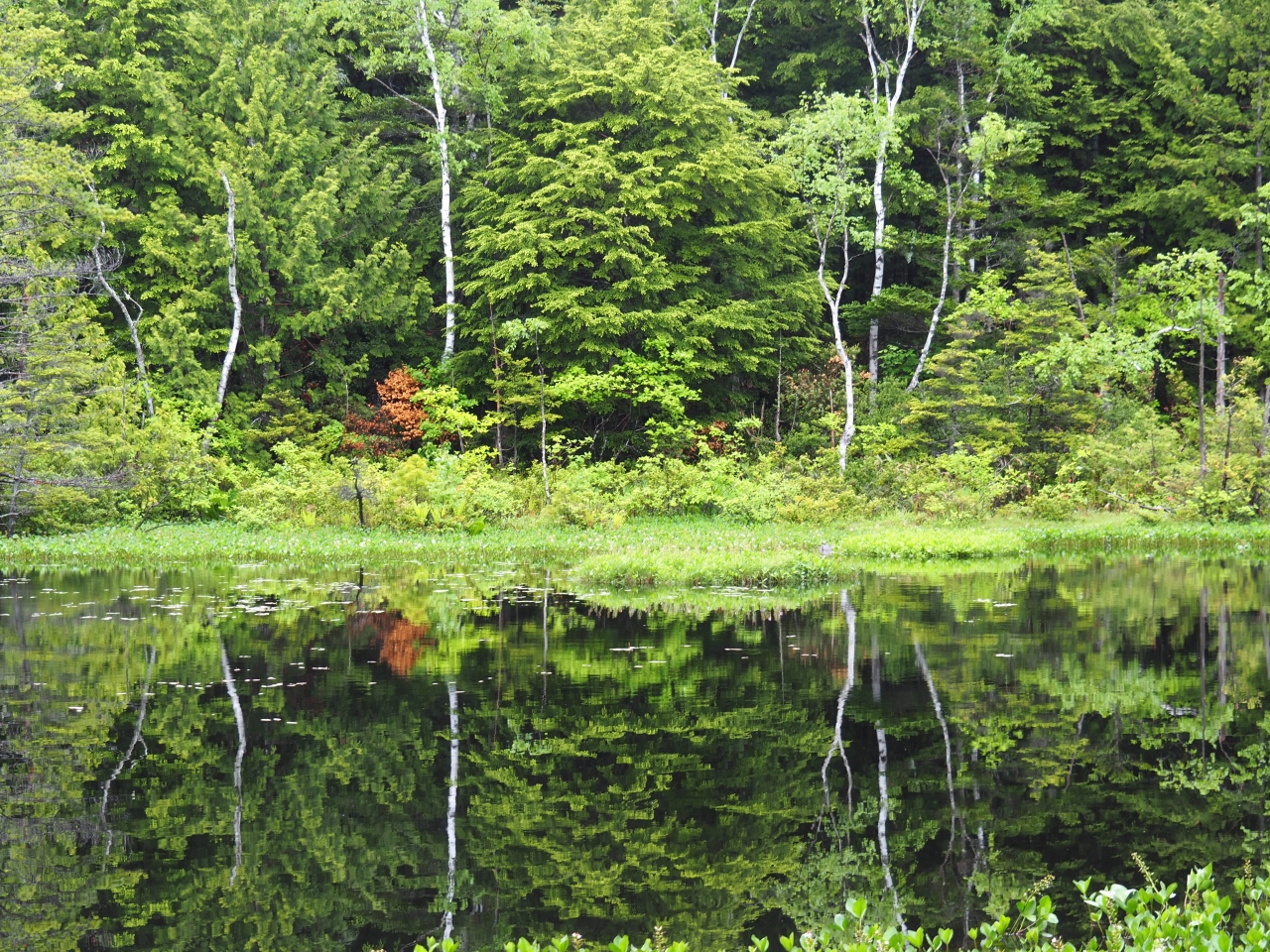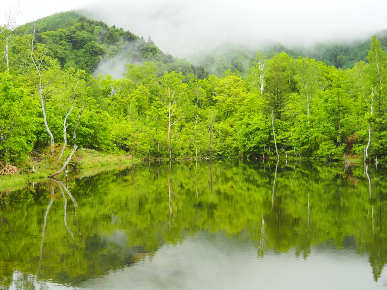乗鞍高原休暇村から楽に歩いていける牛留池。お天気が悪く乗鞍岳は見えませんでしたが、風がなかったので、水面に新緑が反射してとても綺麗でした。木道や展望所も完備されているので、乗鞍に行った際は、お勧めのスポットです。