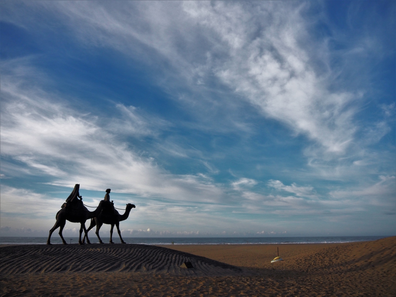 白く綺麗な砂浜で人気の御宿海岸には、「月の砂漠」のモチーフとなったラクダの銅像が立っています。写真だけを撮ろうと思っても、夏のシーズン中には、辺りには有料駐車場しかありませんでした。近くには月の砂漠記念館もありました。