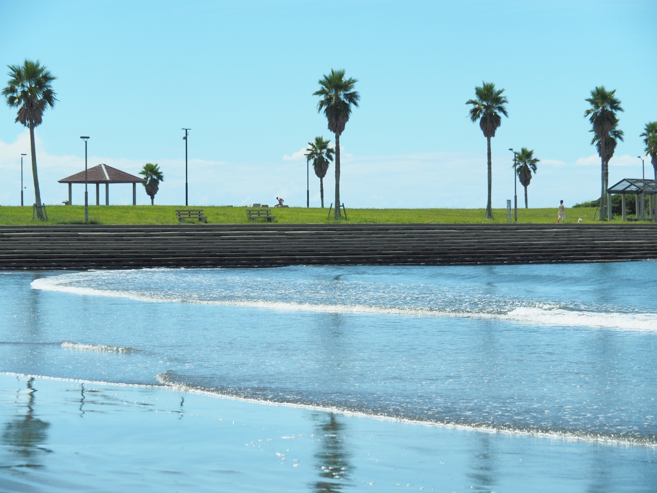 9月に行きましたが、海で遊んでいる人は意外と少なかったです。砂浜が綺麗で、ヤシの木も植えられており雰囲気は南の島って感じがしました。湾になっているので、波は小さく遊びやすいと思います。駐車場は無料でたくさんのスペースがありました。