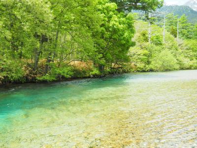6月に行きましたが、水の流れが強く勢いがありました。深い場所でも、川底まで透明で、河原でぼーっと見ているだけでも癒されました。美しい梓川沿いに木道が整備されているので、本格的な装備がなくても歩けます。残雪の穂高連峰と梓川の光景は上高地を代表する絶景のひとつです。