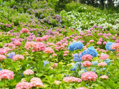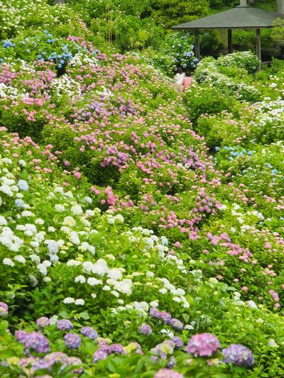 千葉の茂原にあるあじさい屋敷。急斜面にびっしり紫陽花が植えられているので離れて撮ると紫陽花に埋もれているような写真が撮れます。入園料は500円、JAF割引で400円になります。駐車場もありますが、ピーク時はすぐ満車になります。