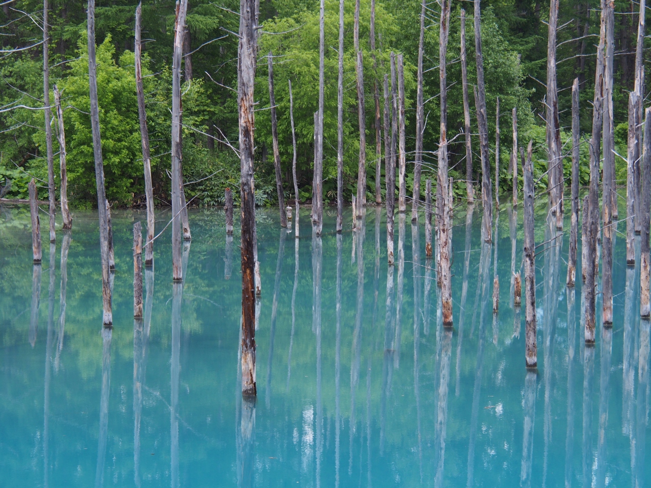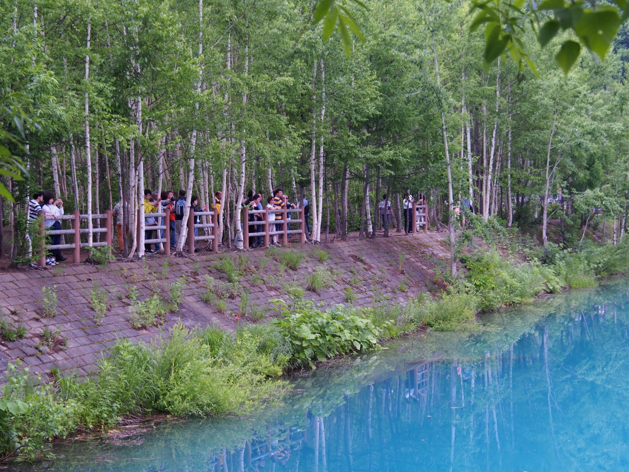 枯れた木が何本も立つ青く美しい池です。駐車所も広く(100台程駐車)立ち寄りしやすい場所にあります。今、美瑛で人気の観光地になりたくさんの人が来られていました。駐車所から歩いてすぐ池が見えてきます。遊歩道完備で見学しやすいです。