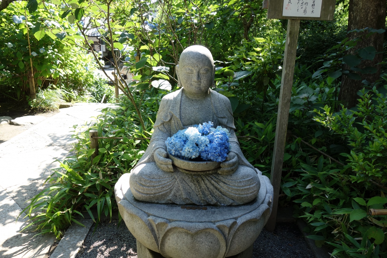6月の上旬、明月院に行って来ました。平日だったけど、たくさんの人が来られていました。淡いブルーの紫陽花が境内いっぱいに咲いていました。本堂の丸窓から見る景色は絵になっていて皆さん、写真に納めていました。紫陽花を抱えた花想い地蔵も良かったです。6月は拝観料500円です。