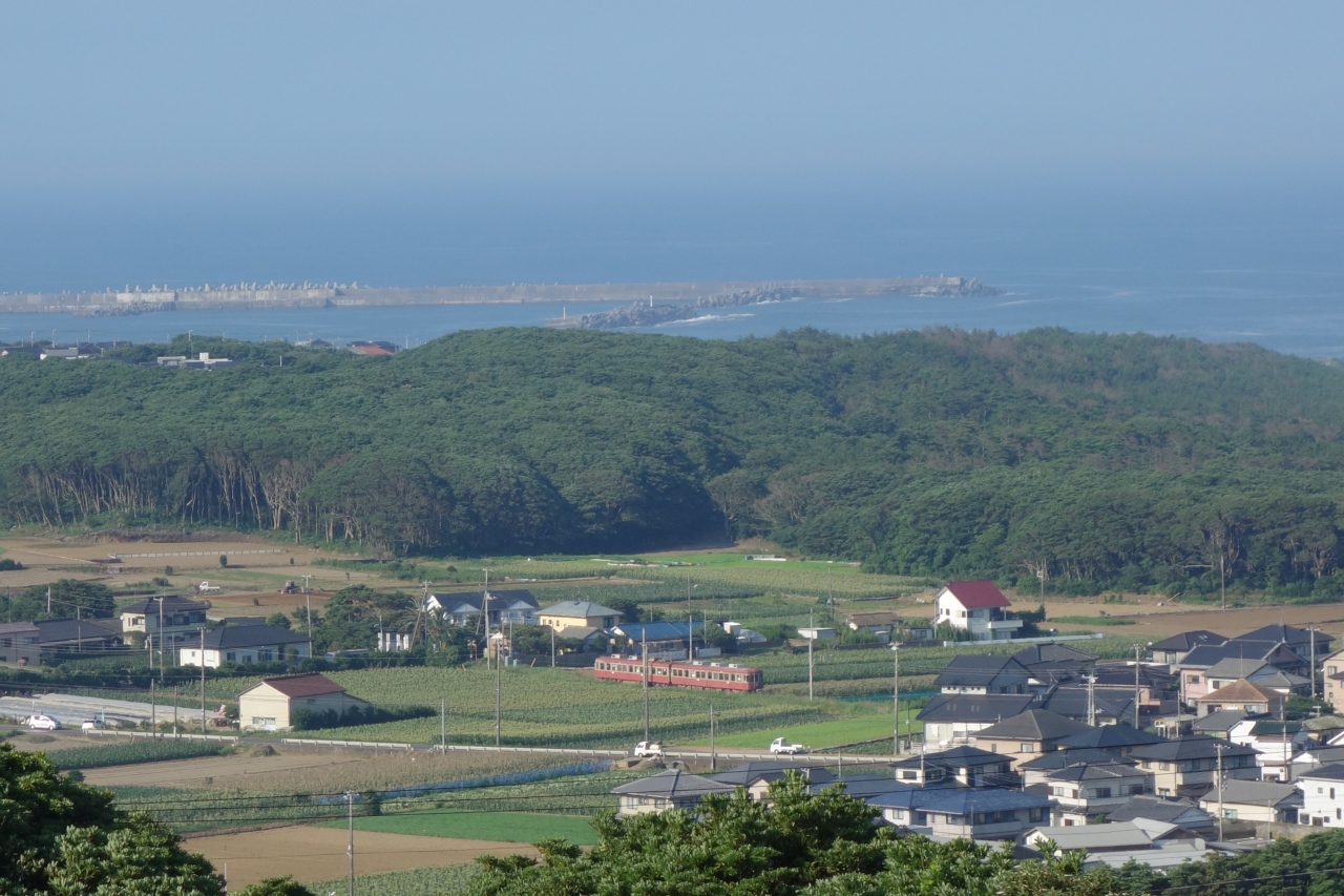 屋上に昇ると360度の展望が広がっています。天気の良い日は、屏風ヶ浦や銚子のシンボル風車が廻っているのがはっきり見ることが出来ます。また、コトコト走る銚子電鉄も小さいですが、見えるので楽しいです。入場料は350円、銚子電鉄の一日フリー切符を持っていれば50円割引されます。駐車場が無料ですが、そこから展望館までは少し坂になっています。