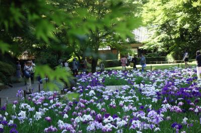 6月、明月院本堂の裏にある後庭園は華やかな花菖蒲が咲き乱れます。春と秋のみの限定公開で入園料は別途500円でした。紫陽花と一緒に楽しめるのでこの時期にはお勧めです。でも、週末は大勢の人が来られるので境内はかなり混雑します。