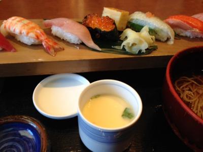 メルマガ会員になっていて木曜日は親潮にぎりセット1380円が半額になります。麺はうどんかお蕎麦がどちらか選ぶことができ、また温、冷も選べます。他の曜日に行ったことがないのでわかりませんが、その日は混んでいて待っている人がいました。でも、注文してからはすぐ料理が出てきました。半額で食べれたのでお得感がありました。