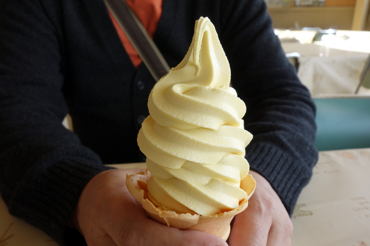 以前、ヨーロッパ風の建物は有料の施設になっていましたが、今は全て道の駅になっているので庭園や建物の中を覗いてみると楽しいです。はなまる市場は新鮮な野菜やお花が安く売られています。枇杷ソフトは380円、100円の割引券を使うとお得ですね。