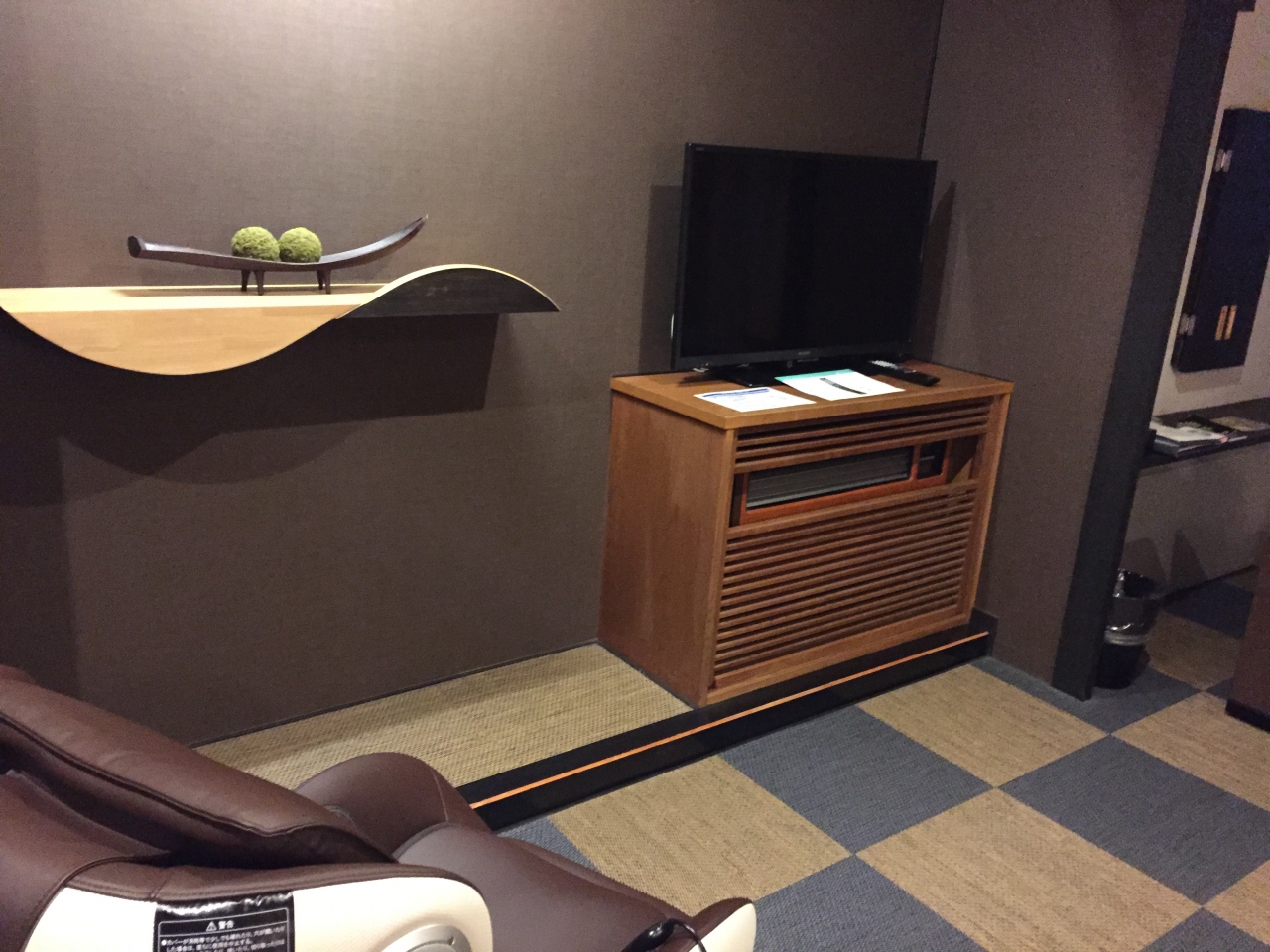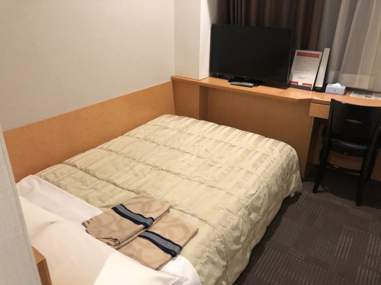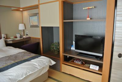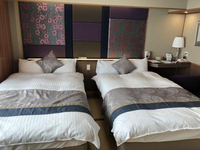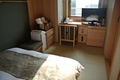全館畳敷きの綺麗なホテルの部屋は少し狭いですが、機能的でとても落ち着いた造りで快適です。大浴場もゆったり寛ぐことができ、やはり温泉があるのはいいですね。