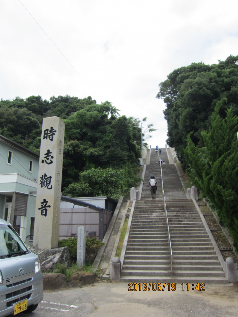 天台宗のお寺です。 階段にある入り口には、2本の石柱があり、御嶽山高讃寺と、知多四国六十一番札所と刻まれています。 参道の途中の山門には、2体の仁王様が安置されています。 境内には、樹齢350年超のツバキの巨木があります。 長い参道が清々しい感じでした。