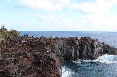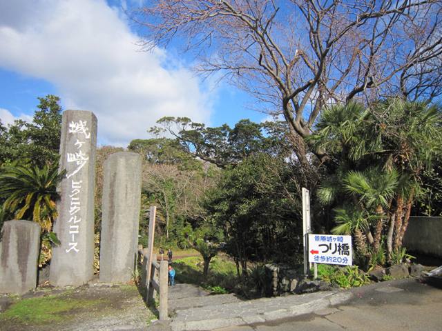 城ヶ崎は誰でも一度は見ておきたい景勝地です。ピクニカルコースは富戸港近くの起点から、海岸沿いに整備された遊歩道を歩き、伊豆海洋公園が終点です。ゆっくり歩いても1時間半くらい。アップダウンが続く岬巡りです。吊り橋、灯台もあり、すばらしい景色の中、散策を楽しめます。