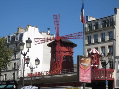 日本にいるときからディナー付きのショーを申し込んでおきました、当日はツアー会社に集合して、日本人ばかりのバスで連れて行ってもらいました。ムーラン・ルージュ前は入る人で、長い行列になっていました。