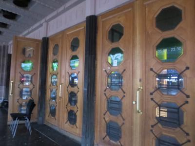 駅の出入り口には重厚なドアが。防寒のためか、またさらに中にドアがありま...