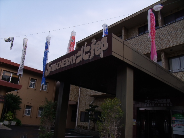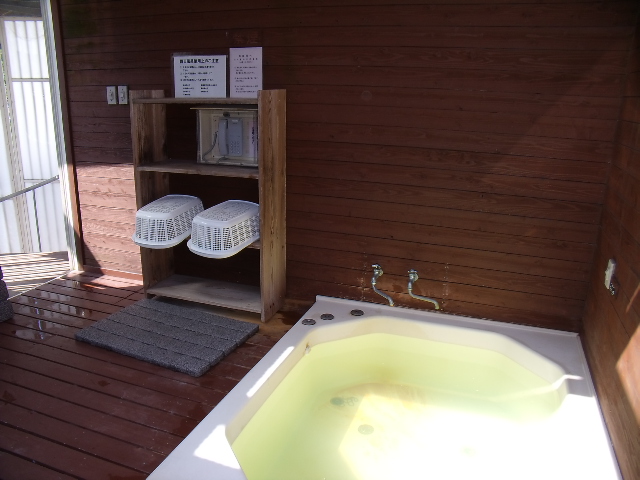 「サンチェリー北郷」には全室に源泉掛け流しの客室専用露天風呂が付いていた。24時間、好きな時に入浴できるのは大きな魅力だ。源泉温度は51℃。塩分があり飲用には適さない(塩素も入れているのだそうだ)が、入るにはバッチリ、疲れが取れた。