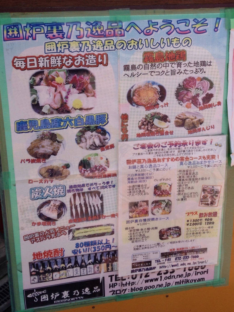 南海高野線の堺東駅から歩いて5~7分ぐらいのトコロにあります。半地下になっているスペースで、囲炉裏が多いつくりになっています。お店の一番奥に個室スペースがあり、貸切で利用可能です。料理は炭火で焼いているので美味しかったです。