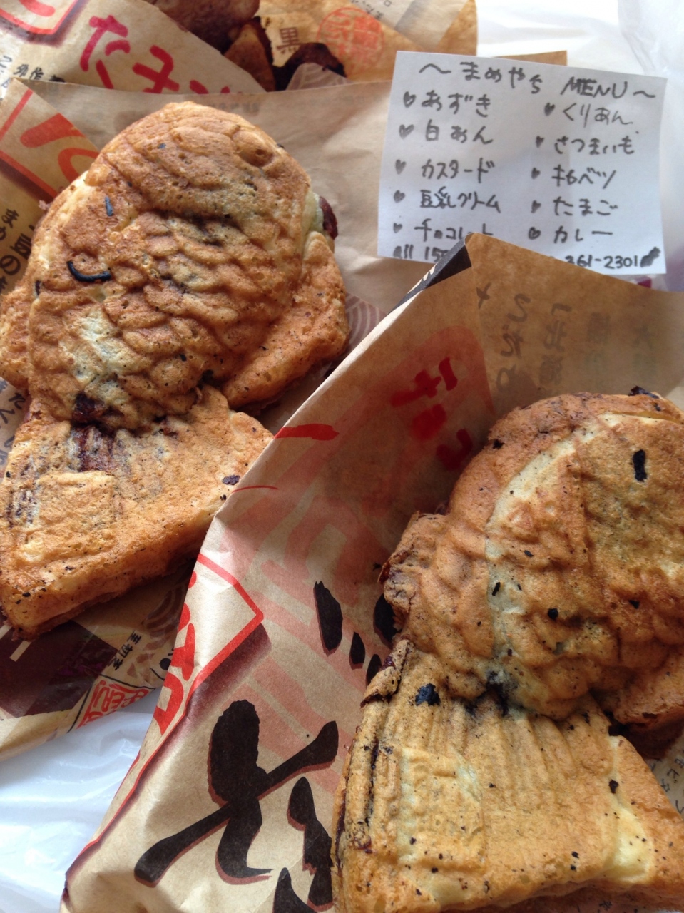 堺市の東区にあるたい焼き専門店です。今回は初めてなのでオーソドックスなあずきとチョコレート、変わり種でたまごを頂きました。たまごはいり卵みたいなんが入ってると思ってたら、ゆで卵が出てきました。美味しかったです。