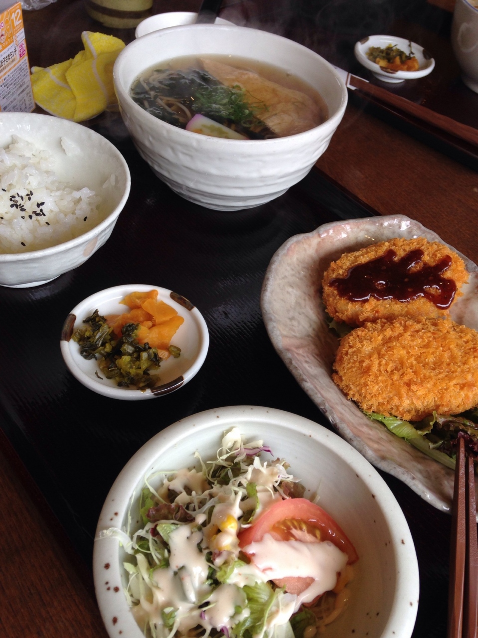 堺市美原区の国道309号線沿いにある、大きな店舗のうどん屋さんです。日曜ランチでお邪魔しましたが、子連れのお客さんなどで満席でした。コロッケ定食と親子丼とミニうどんのセットをオーダーしてシェアして食べました。出汁がきいてて美味しかったです。