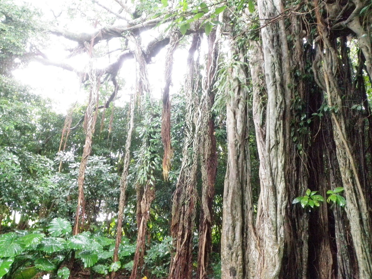 ガジュマルやアコウの木が植えられています。ガジュマルは枝から根のようなものが、ぐいぐい伸びてきて、すごく大きくなっており、東南アジアのような感じです。バスガイドさんが説明してくれなかったら、少しわかりにくいかなと思いました。