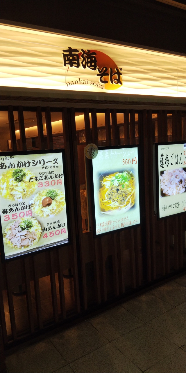 会社関係の飲み会の後で小腹がすいたのでおそばをつるつるして帰りました。南海電鉄のなんば駅の構内にある立ち食いそばのお店です。なんば駅には2階にも3階にも同じ南海そばがあり、二軒とも構内にあります。少し寒くなってきた11月の夜だったので、アツアツのおそばがおいしかったです。