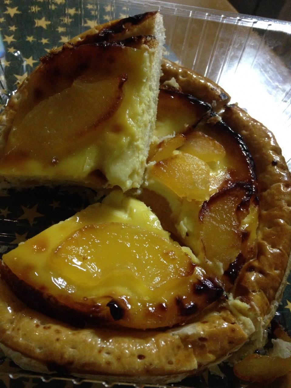 お出かけした帰りに、アップルカスタードパイをみかけて、買って帰りました。店員さんにりアップルポテトパイのほうが人気があると言われましたが、カスタード好きなので、そちらにしました。アップルカスタードパイを購入して大正解でした。
