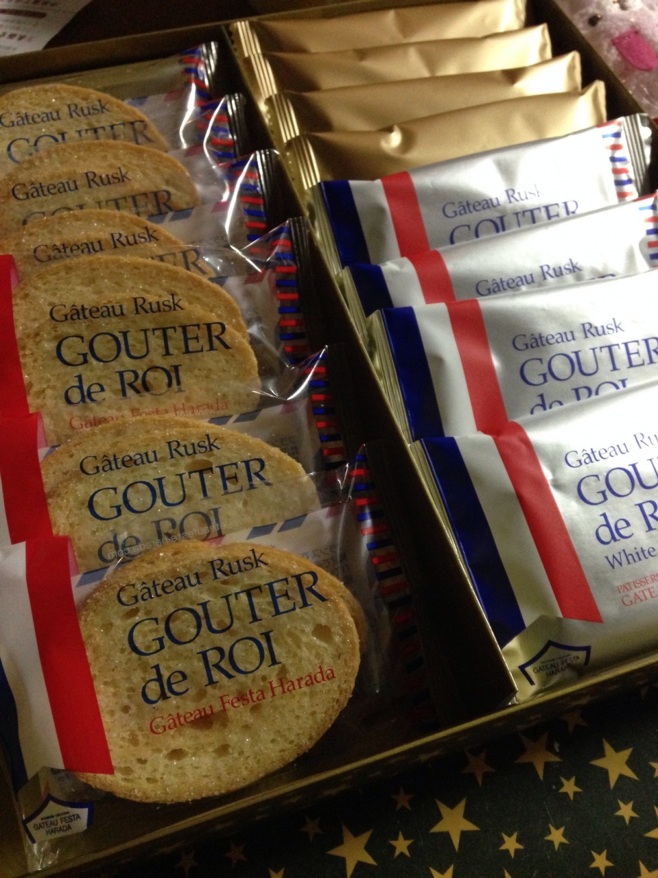 プレゼントを送った知人からお返しにお菓子の詰め合わせを頂きました。フランスパンをバター風味のラスクにしたグーテ・デ・ロワやチョコレートのコーティングされたお菓子などがセットになっていました。さくさくしてて美味しかったです。