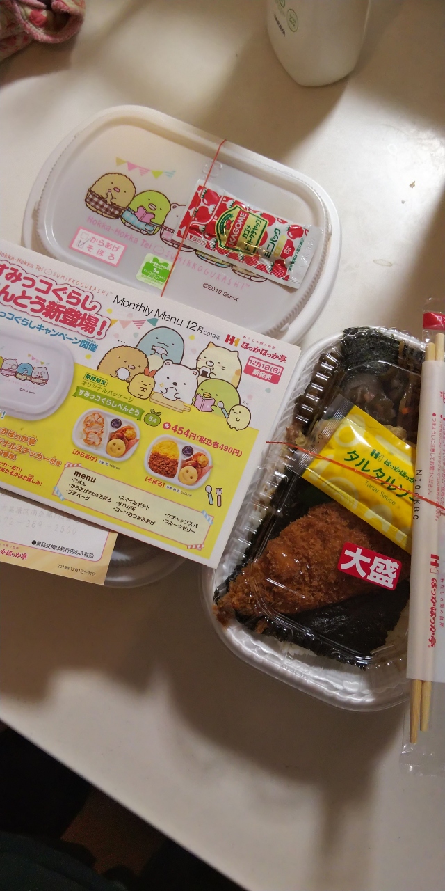 近くの西松屋で子ども用品を買った後でお邪魔しました。車がないと不便な立地にあるほっかほっか亭です。子ども用に12月限定のすみっこぐらし弁当をふたつとのり弁当の大盛りを買って帰りました。子ども大喜びでした。また機会があったら利用したいと思います。