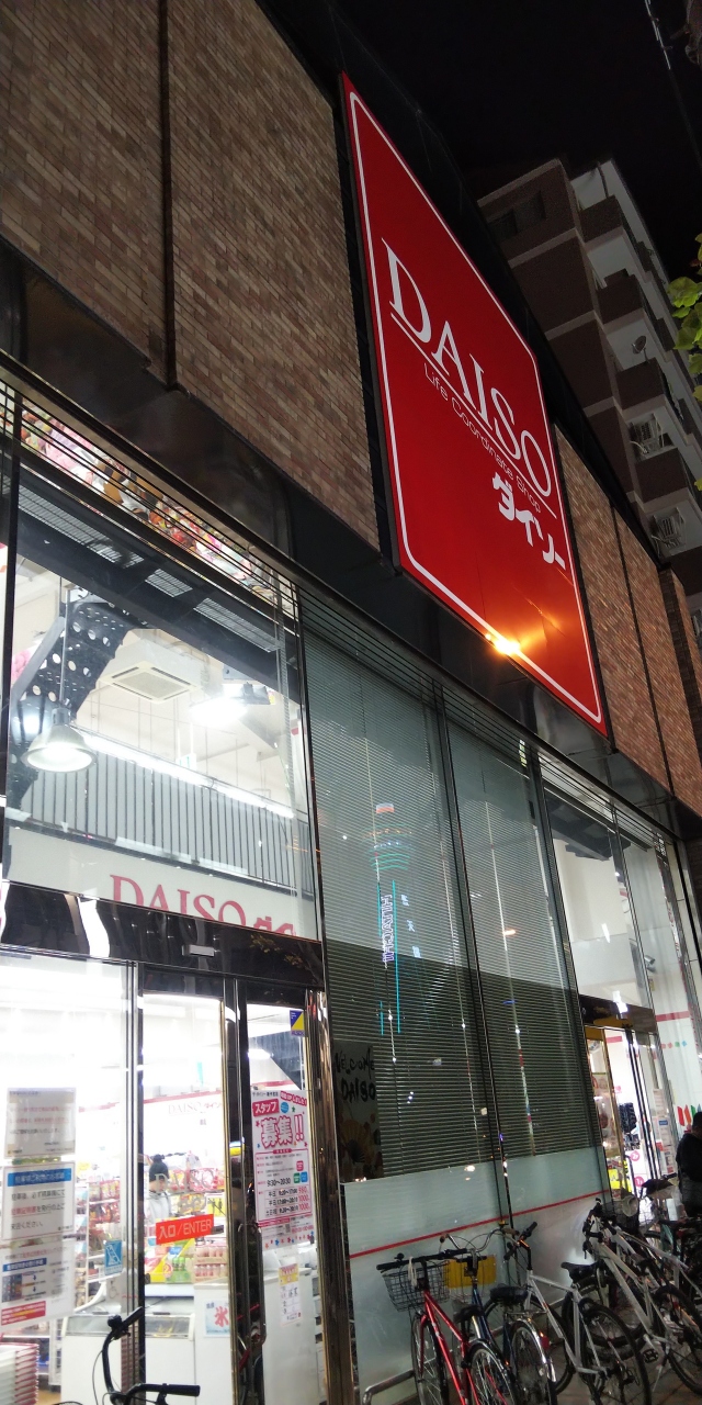 JR大阪環状線の新今宮駅や大阪メトロの動物園前駅が最寄りのダイソーです。お馴染みの100円均一のチェーン店です。今回は自転車のライトと瞬間接着剤を購入しました。また機会があったら利用したいと思います。