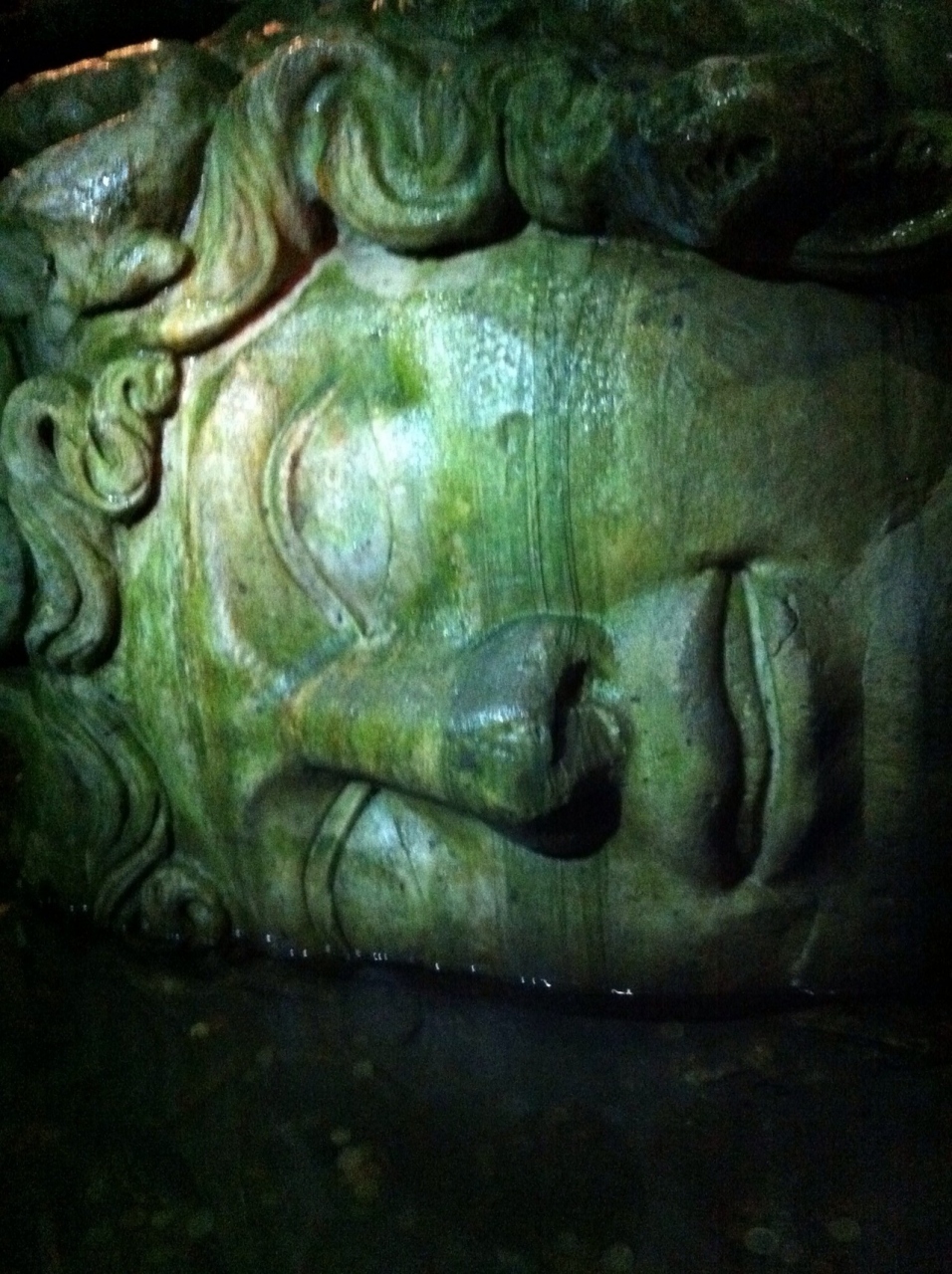 イスタンブールの地下にある、薄暗い壮大な地下宮殿です。宮殿というより貯水槽の為、部屋の区切りなどなく、大広間がどどーんとあるだけです。アヤソフィア、トプカプ宮殿、ブルーモスクなどイスラム建築の観光地に少し飽きてきたので行きました。大きさ、広さも圧巻ですし、一番奥にあるメドゥーサの彫刻も一見の価値ありです。