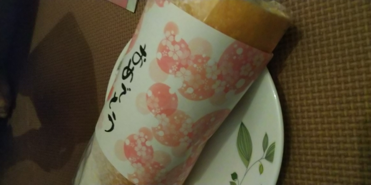 会社帰りにおうち土産で生ロールケーキを購入しました。子ども達が寝た後で嫁ちゃんと二人でいただきました。生地もクリームもふわふわでおいしかったです。指定したわけではありませんが、春っぽいおめでとうパッケージで包んでありました。
