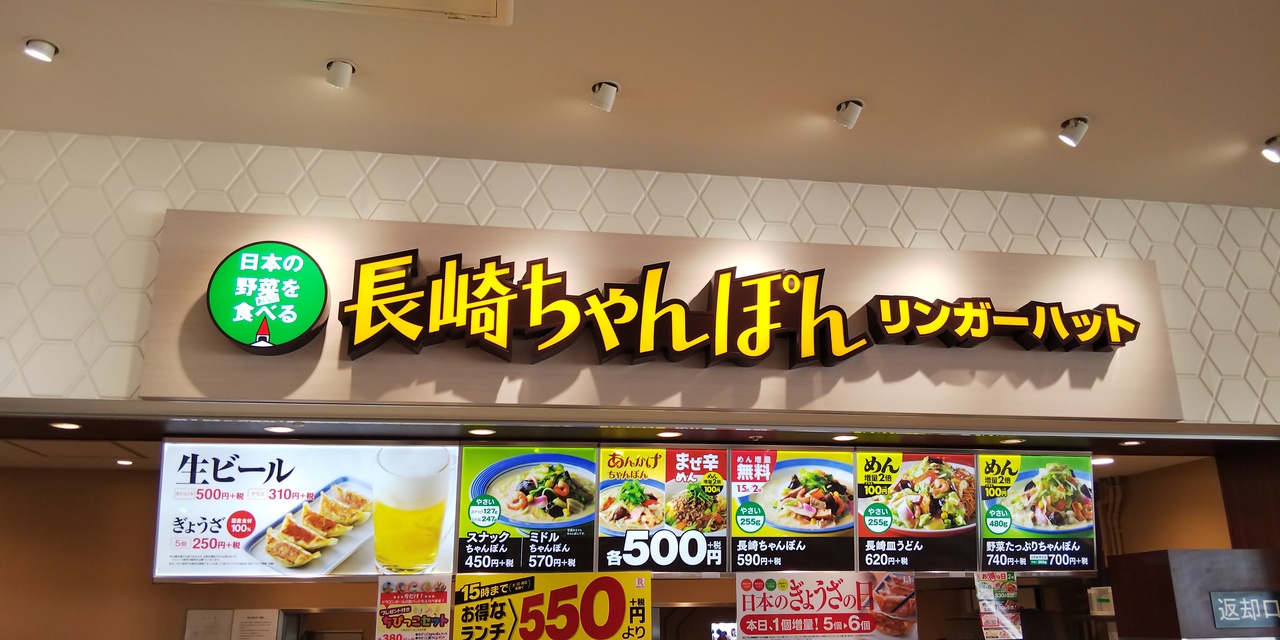 もりのみやキューズモールの2階にあるフードコートにあります。長崎ちゃんぽんは麺2倍に増量しても同料金で、ボリューム感がありお腹いっぱいになりました。子どもが5歳と3歳なのでシェアして頂きました。レシートアンケートでゲットした、餃子も美味しく頂きました。さらに子育てカード提示で10%オフになりました。また機会があったら利用したいと思います。