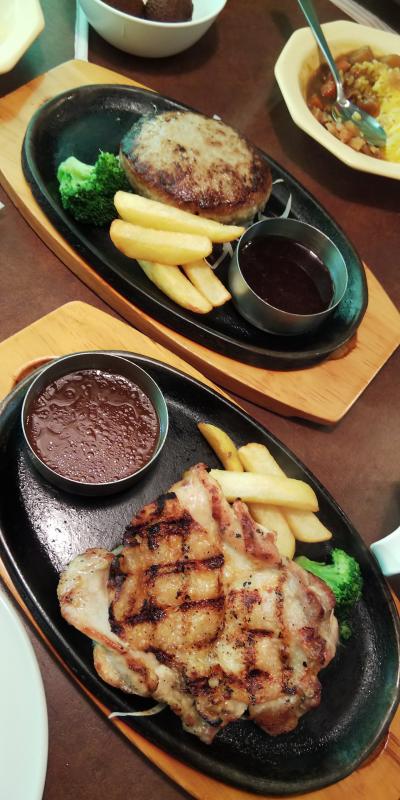 ランチで嫁ちゃんと子どもふたりとお邪魔しました。5歳の娘が好きなのもあり、ランチでよくお邪魔するハンバーグとお肉のチェーン店です。今回はチーズinハンバーグとチキンステーキをそれぞれバイキング付きでオーダー。シェアして頂きました。子どもはうどんセットをオーダーして美味しそうに食べていました。また機会があったら利用したいと思います。