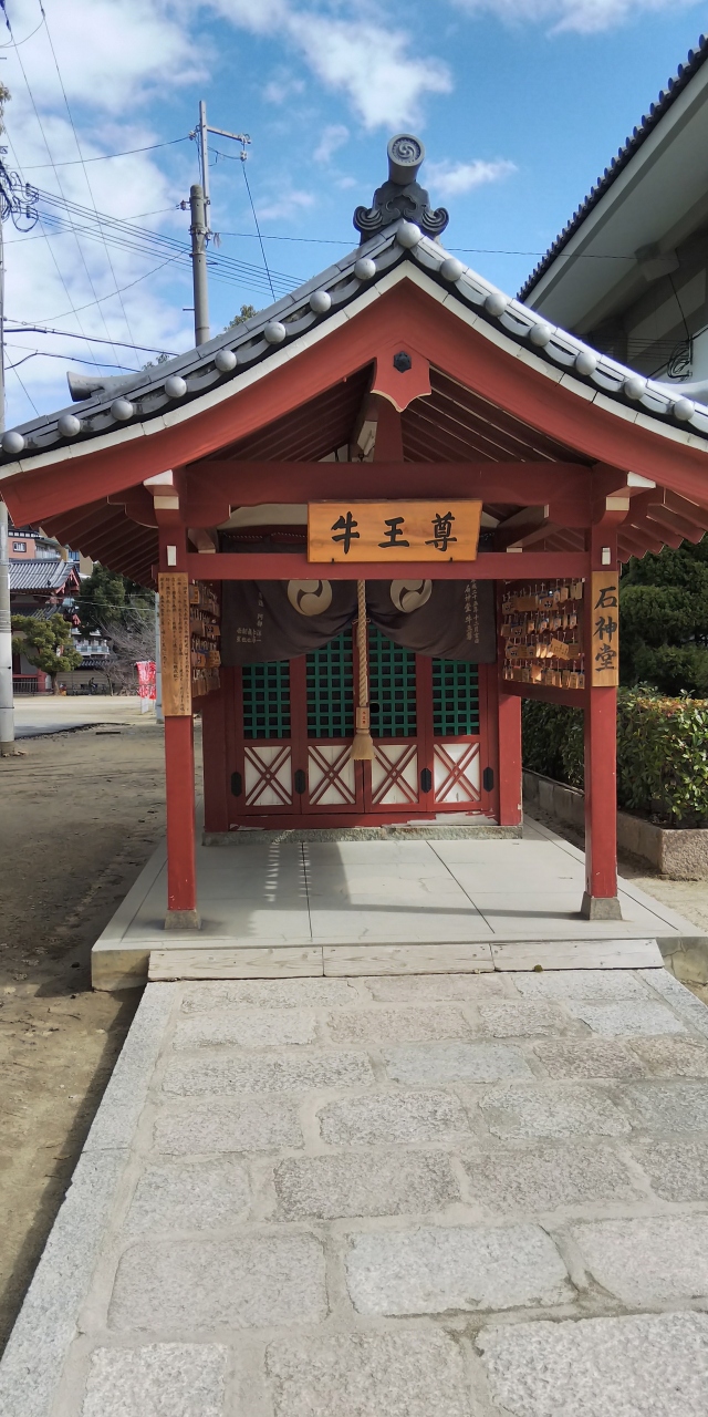 石鳥居から入って、極楽門を通り、時計と反対まわりにみてまわりました。宝物館の北側で亀井堂の近くにあります。小さな御堂で中に牛がまつられています。- 旅行時期