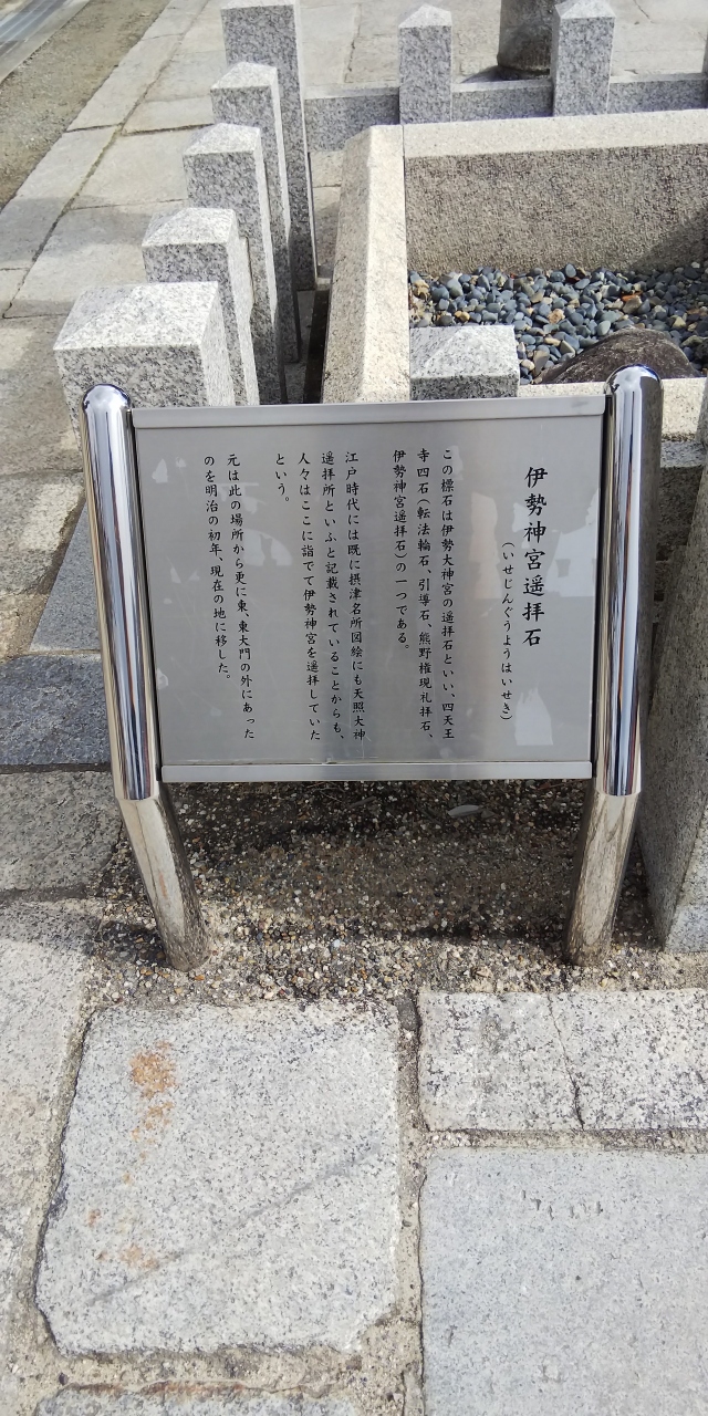天王寺駅から参道を通っていくと最初に石鳥居が迎えてくれます。その鳥居に16文字で画かれた篇額があります。- 旅行時期