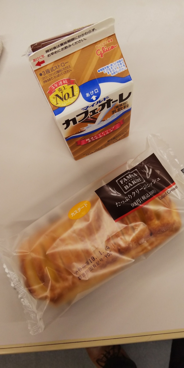 お馴染みのコンビニエンスストアー、ファミリーマートです。朝ごはん用にプライベートブランドのたっぷりクリームデニッシュとパックのコーヒーを購入しました。ボリューム感もあって、おいしかったです。また機会があったら利用したいと思います。