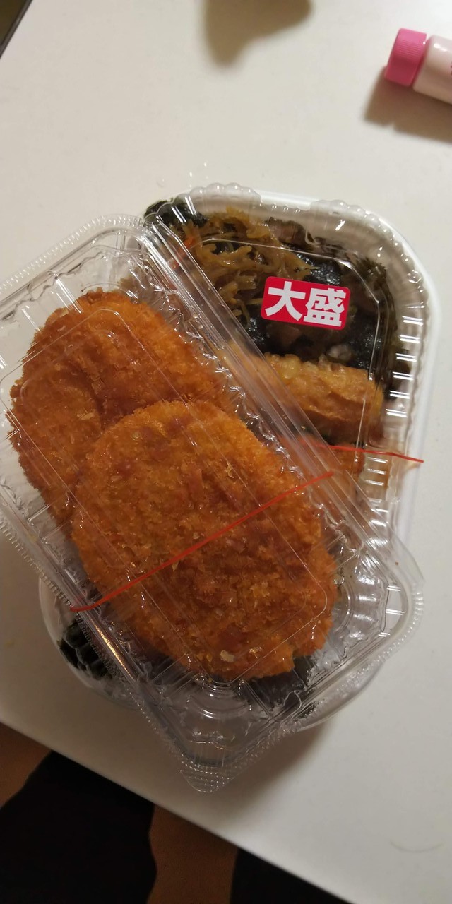 平日の晩ごはんで、利用しました。今回は、とりめし弁当の大盛とのり弁当の大盛、子ども用にプチべんとうを購入しました。前回利用時にコロッケの割引券を頂き利用しました。70円が20円になり、メッチャお得でした。