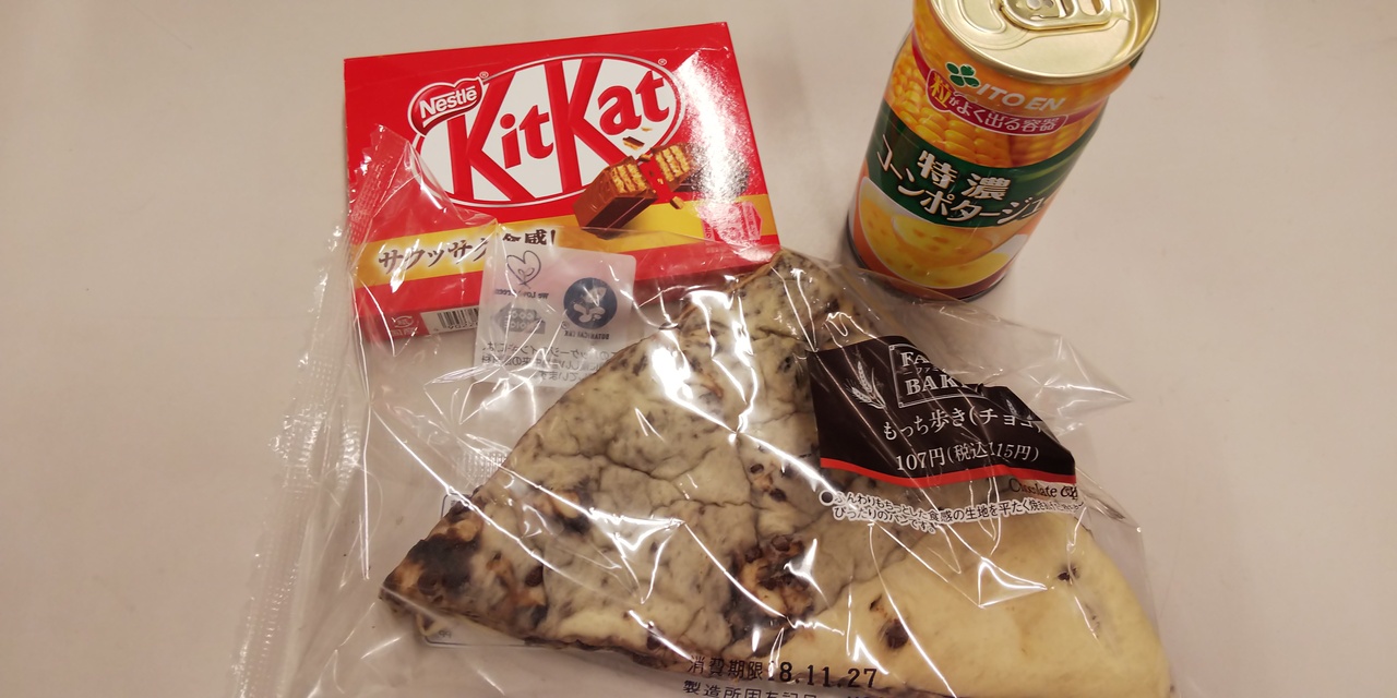 お馴染みのコンビニエンスストアー、ファミリーマートです。朝ごはん用にもっち歩きチョコパンとコーンスープ、キットカットを購入しました。ボリューム感があって、おいしかったです。また機会があったら利用したいと思います。