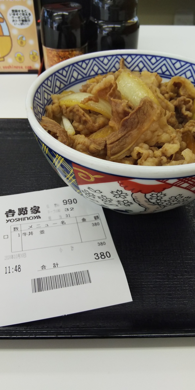 JR大阪駅の高架下にある吉野家です。仕事中に平日のランチでお邪魔しました。いつもの牛丼を頂きました。380円税金込みはリーズナブルだと思います。早くて、安くて、味はまあそれなりでした。また機会がありましたら、利用したいと思います。