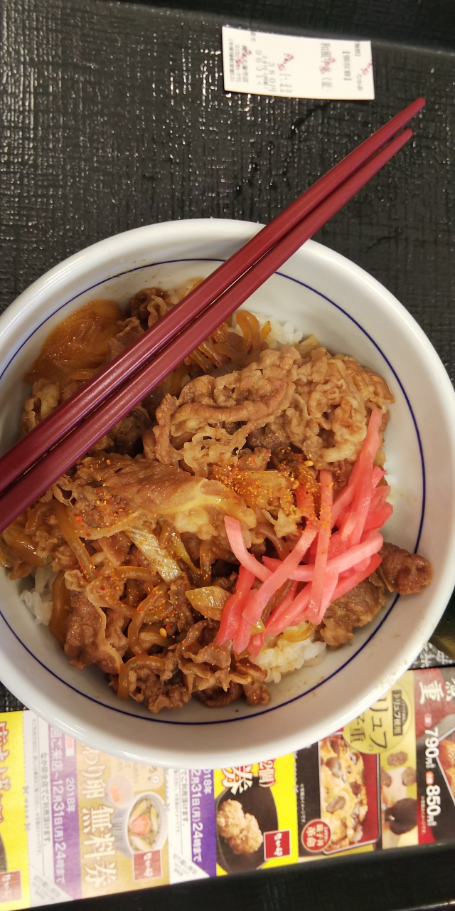 お馴染みの牛丼・親子丼や京風うどんのチェーン店です。今回も和風牛丼をオーダーしました。香りとうがらしや紅しょうがを加えてえぇかんじでした。また唐揚げ二個券を頂きましたので、また機会があったら利用したいと思います。