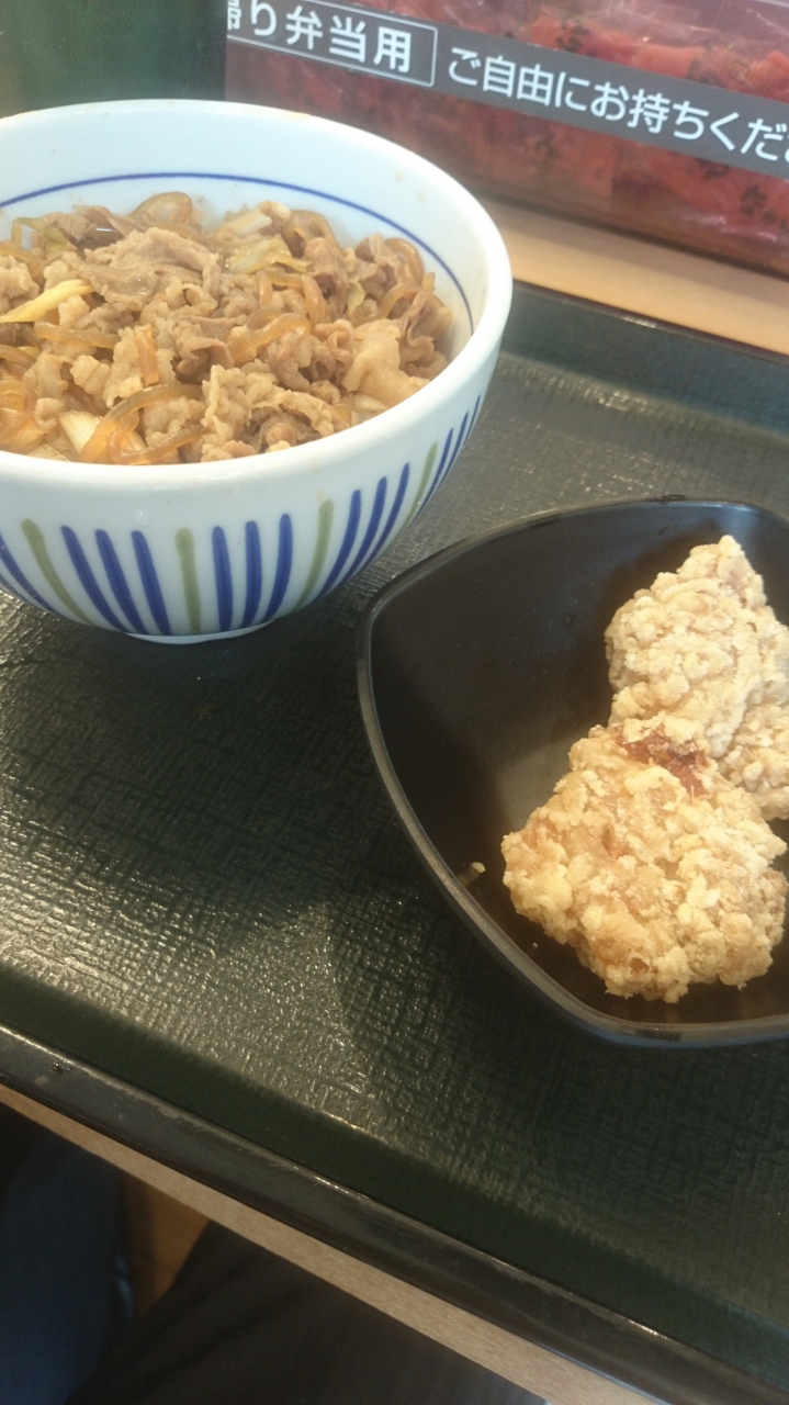 牛丼や肉系の定食のファストフードのチェーン店です。牛めしをオーダー、320円でお味噌汁付きです。紅ショウガを乗せると美味しいですね。他の牛丼チェーン店に比べて、松屋は料金内に、お味噌汁が付いているのが嬉しいです。また機会があったら利用したいと思います。