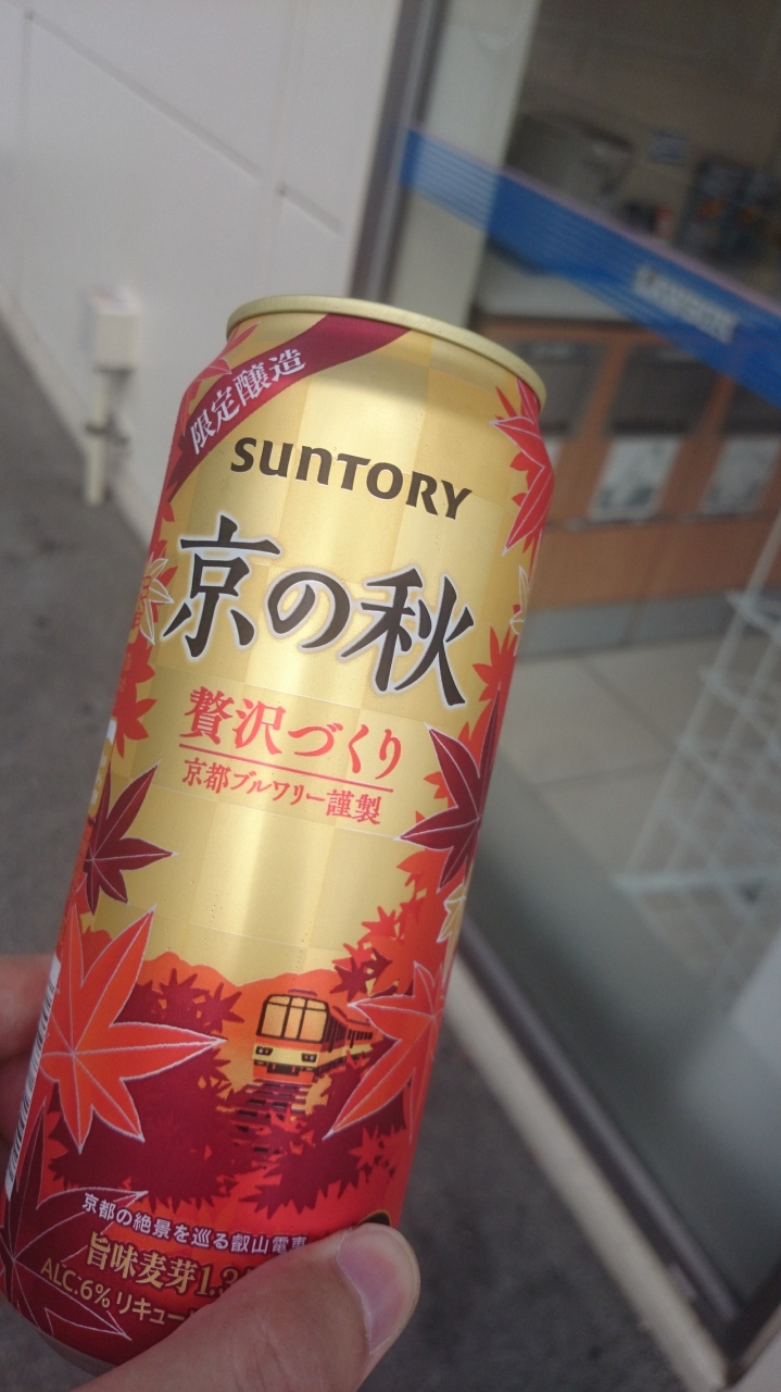 お馴染みのコンビニエンスストア・ローソンです。休みの日にぶらぶらしていて、喉がかわいたので、サントリーの京の秋を購入しました。