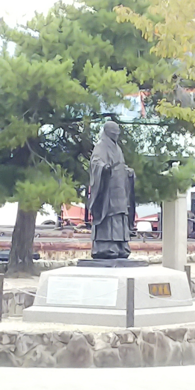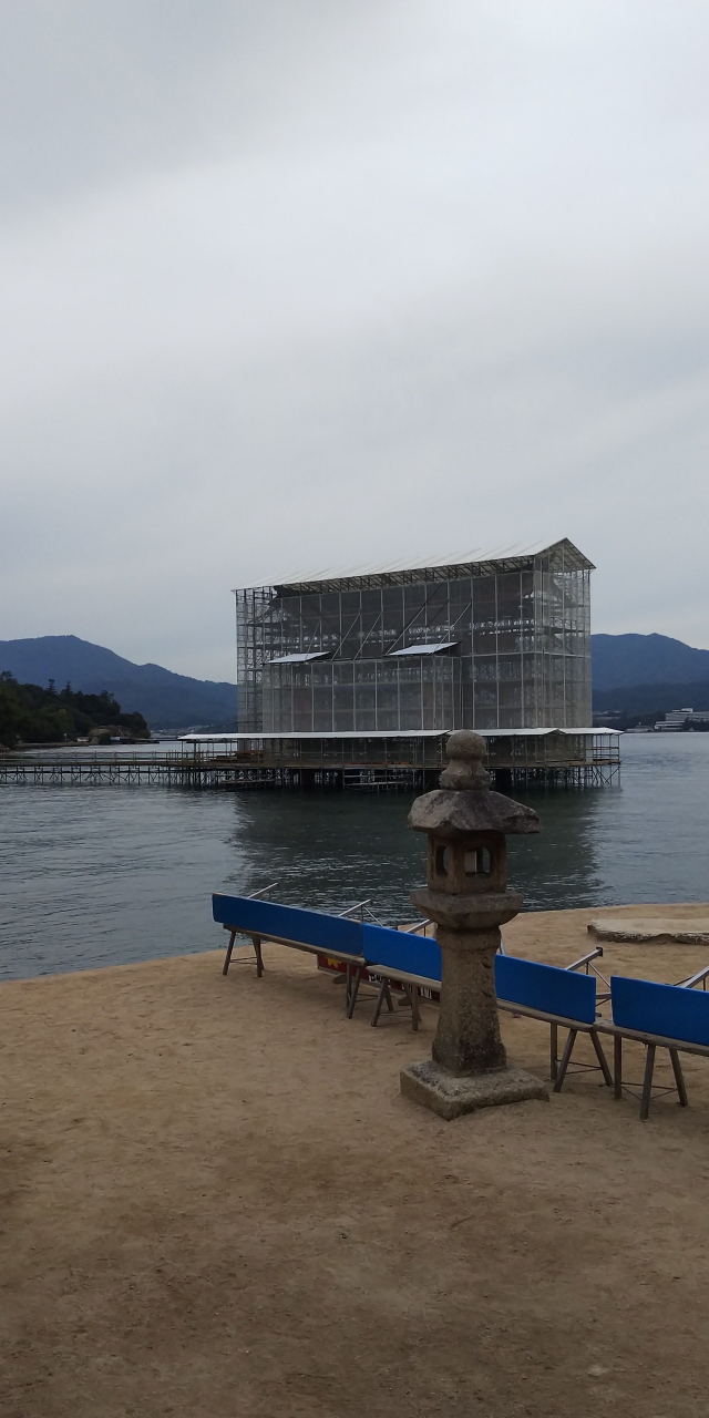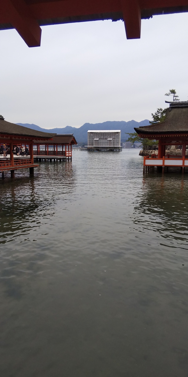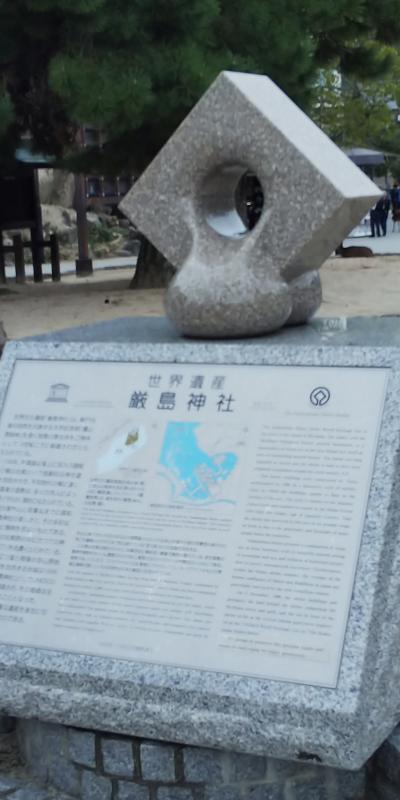 厳島神社が世界遺産に登録された記念碑です。宮島のフェリーターミナルの少し西側にあり、角度によりますが、丸い穴から大鳥居が覗けるように作られています。また宮島に行く機会があったらお邪魔したいと思います。
