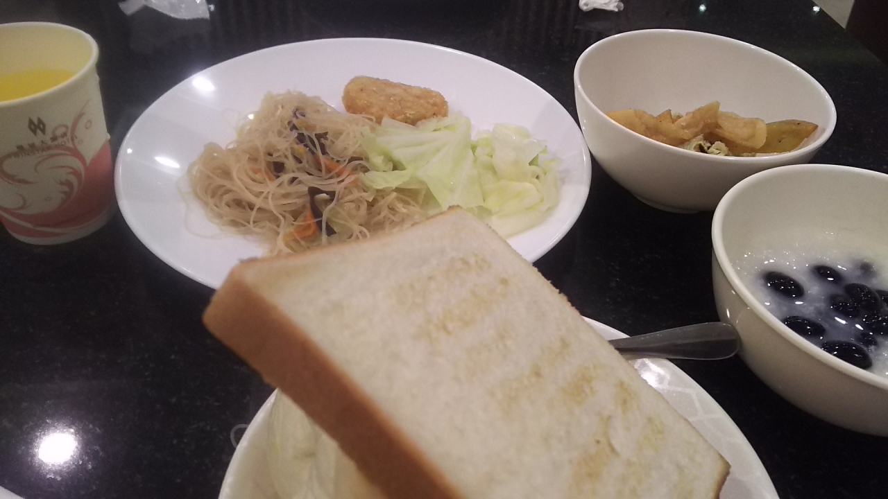 朝食は地階、広さは十分ながら、品数と補充が追い付かない感じです。