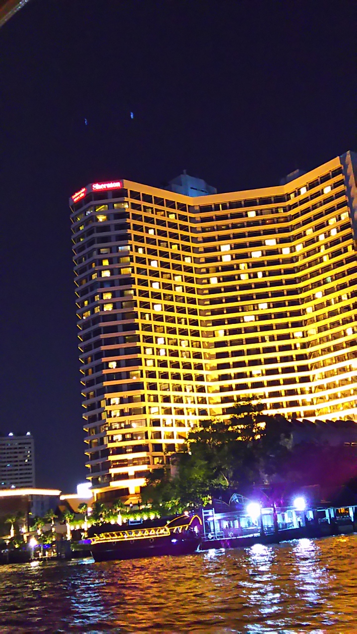 チャオプラヤ川の左右には高層ビルが沢山ありますが、夜景は川面を行き交う船の電飾と相まって綺麗です。- 旅行時期