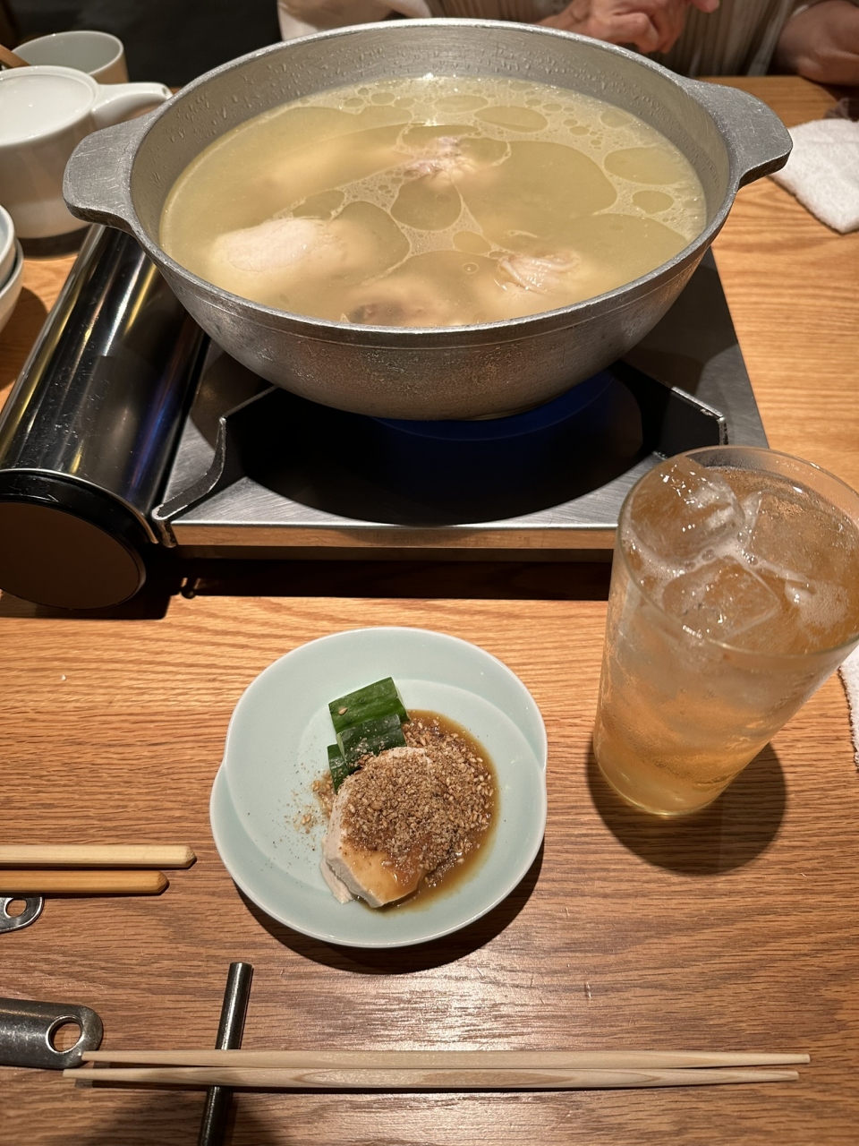 スタッフが再びスープを注いでくれました、つくねに味がついていてスープの味が変わります