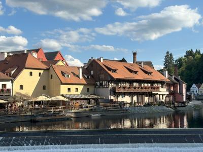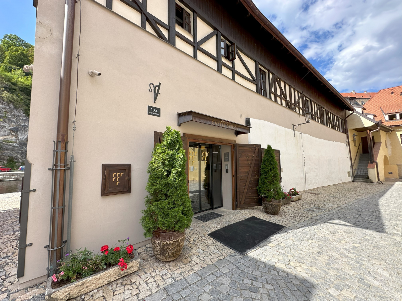 宿泊した部屋は3階の屋根裏部屋ですが窓からはチェスキークロムロフ城がまじかに見ることが出来ました