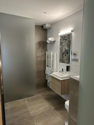 バスルームは大きなバスタブ&シャワーブースと洗面とトイレは別になっています、トイレはフルオートのウォシュレット付きでした