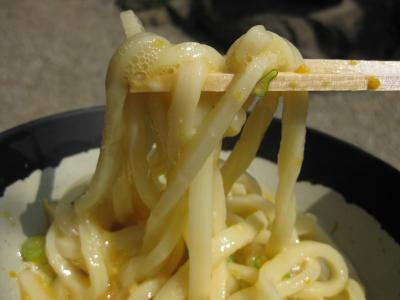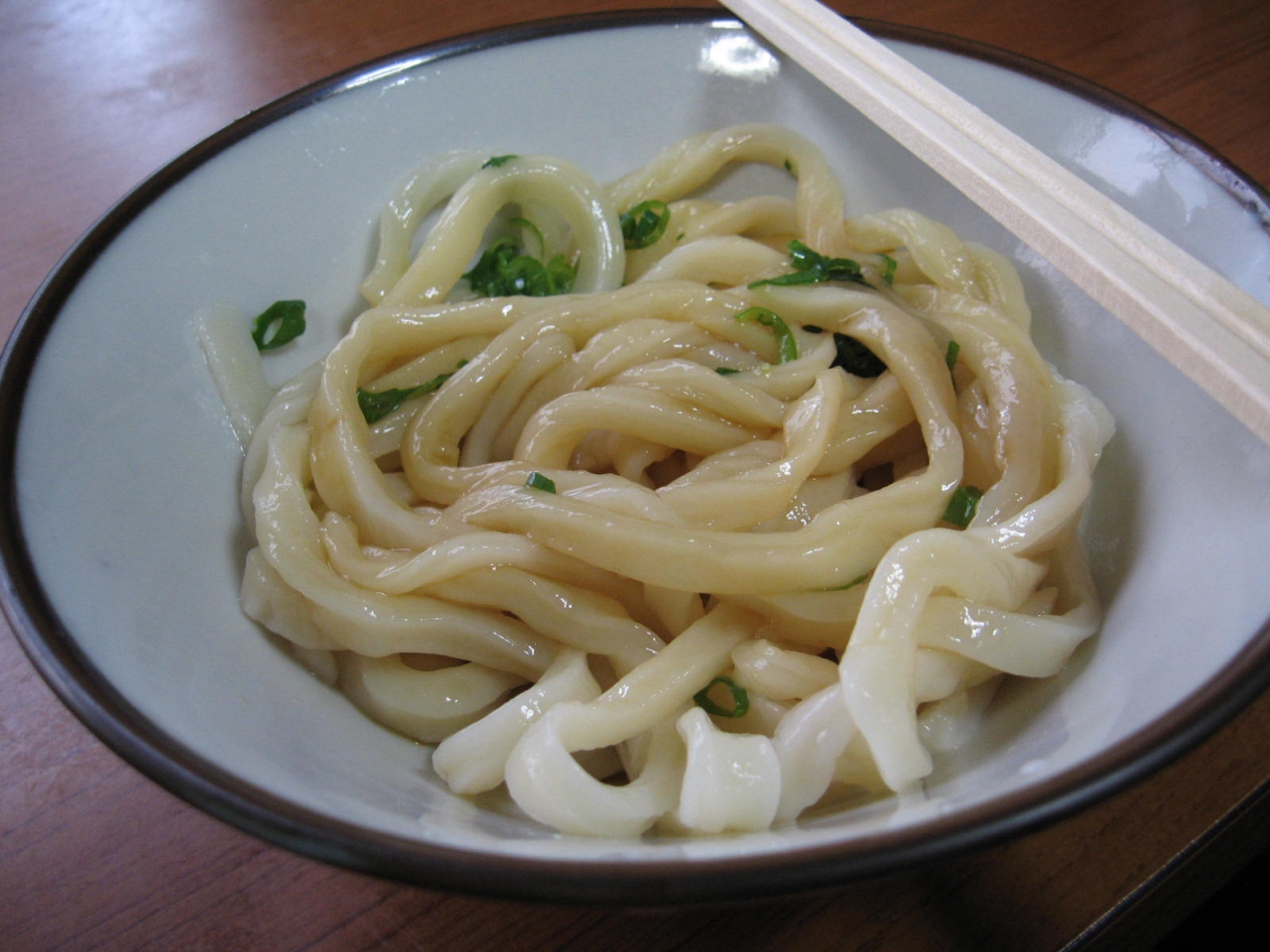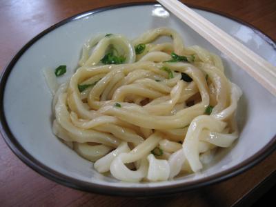 茹で上がったうどんにサッとしょうゆをたらして食べるというシンプルな食べ方をしました。