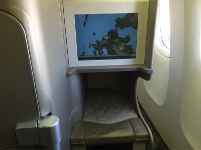 B777でモニターはこんな感じ、その下には足置きスペースが・・・座席を...
