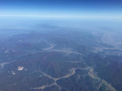 そして、釜山上空ですアシアナ航空はよく利用しますが、昔、チェジュ発釜山...
