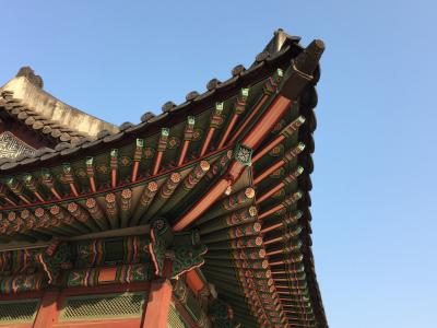 韓国の建物の屋根の角、色鮮やかな垂木が集まっているところが好きだったり...